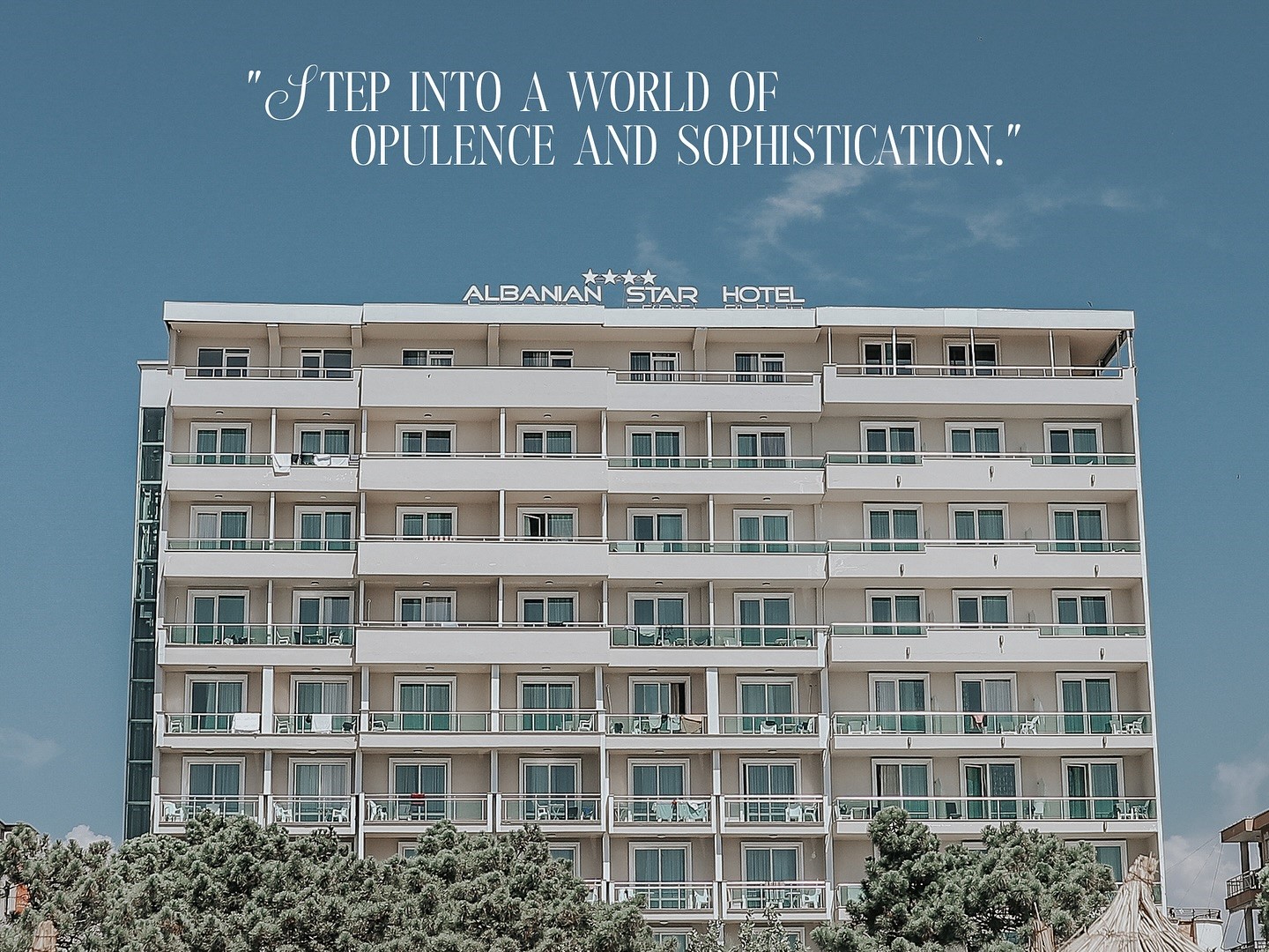 Albanian Star Hotel Positioned directly at the sea shore, 13 km away from the city center, with all the advantages of architecture, Albanian Star Hotel offers you a unique experience to feel the tranquility of a paradise at sea level. In addition to its position at the first sea line, the hotel reputation has grown mainly thanks to the professional personalized service.