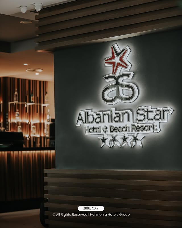 Albanian Star Hotel Positioned directly at the sea shore, 13 km away from the city center, with all the advantages of architecture, Albanian Star Hotel offers you a unique experience to feel the tranquility of a paradise at sea level. In addition to its position at the first sea line, the hotel reputation has grown mainly thanks to the professional personalized service.